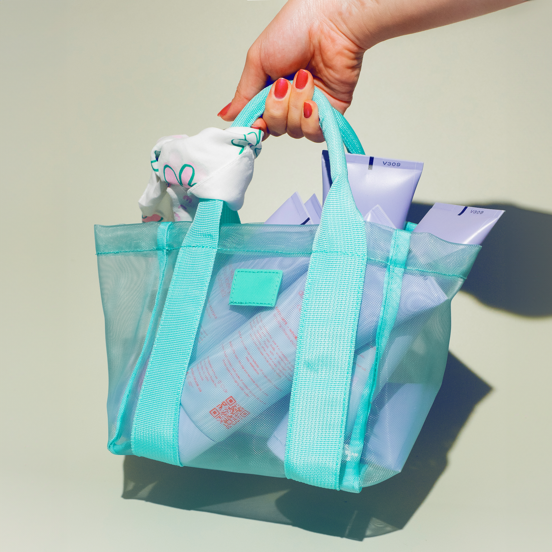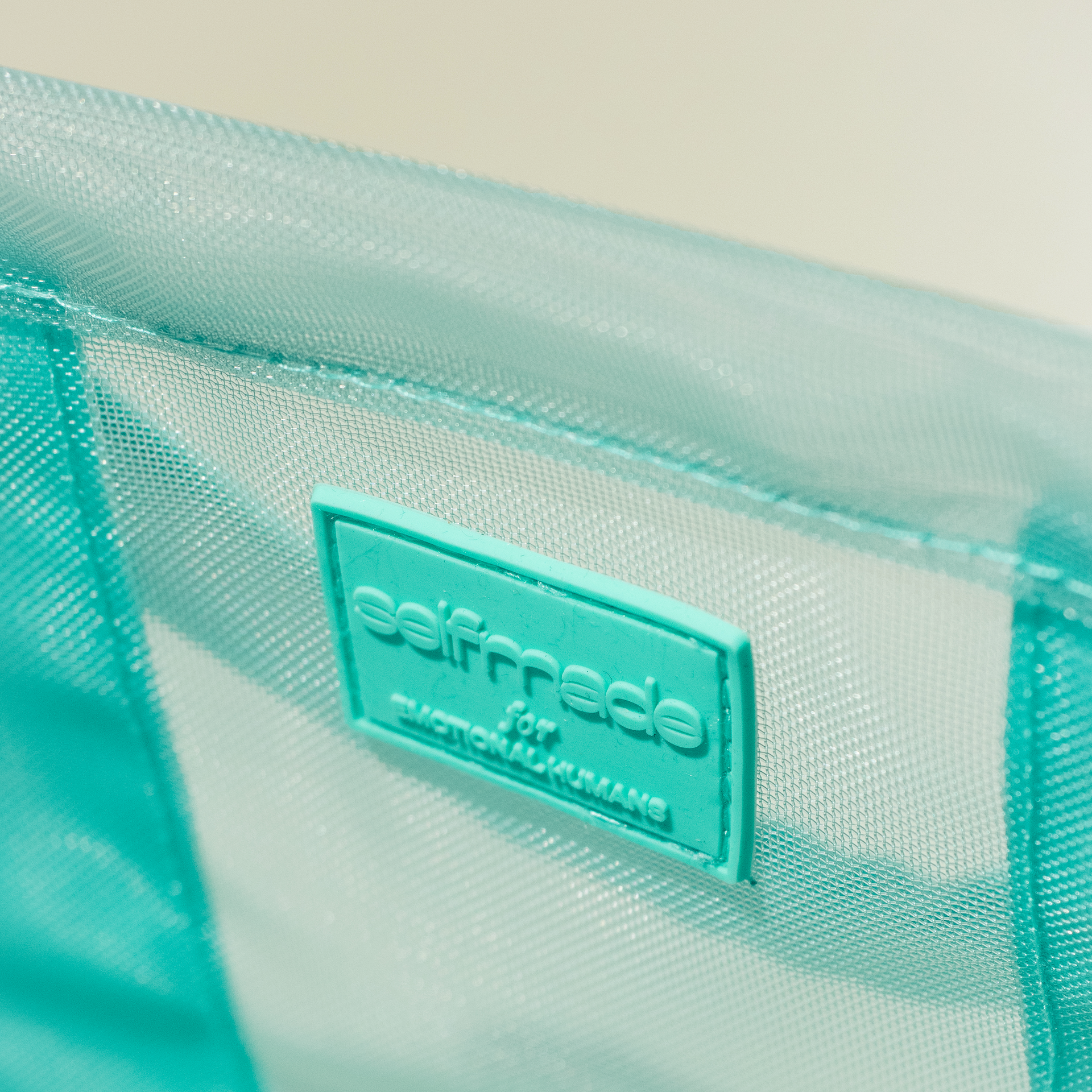 The Tiny Tote isn't just a bag, it's your emotional wellness companion. Made from water-resistant mesh, it features an internal embossed silicone patch and an "I Am Loved" woven label in calming blue and green hues.