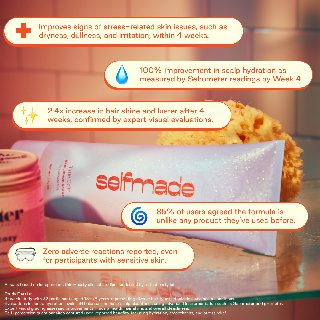 True Grit Resilience Scrub makes your shower the safe place to calm your stress responses, soothing irritation and providing relief from dryness, flakiness, and inflammation. This scrub combines gentle exfoliation with hydrating ingredients to help your skin bounce back after a tough day. It gives your skin the nourishment it needs while also offering a moment to unwind, helping you feel renewed and empowered—both inside and out.