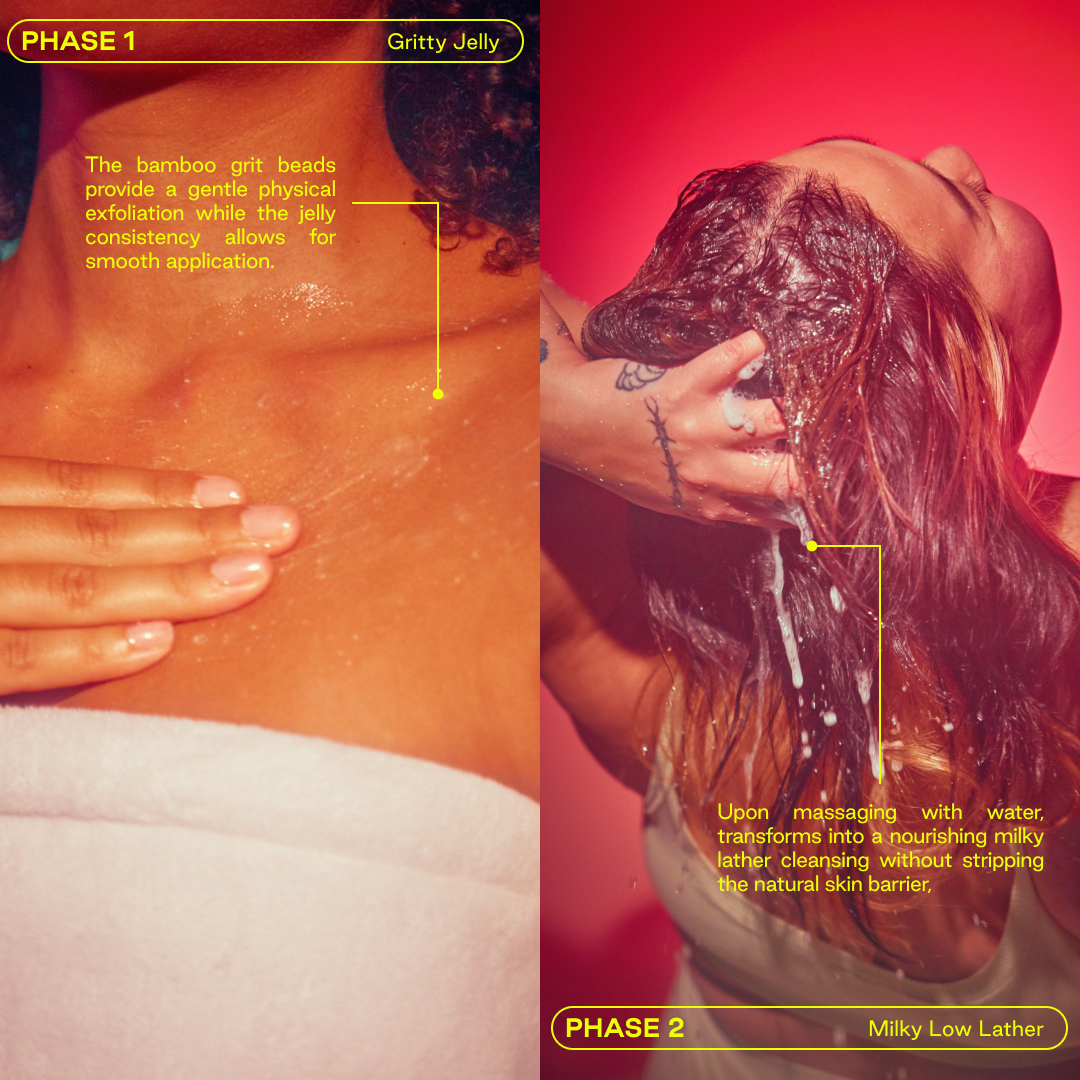 A gritty jelly that clears buildup, buffs away roughness, and leaves skin soft—never stripped.